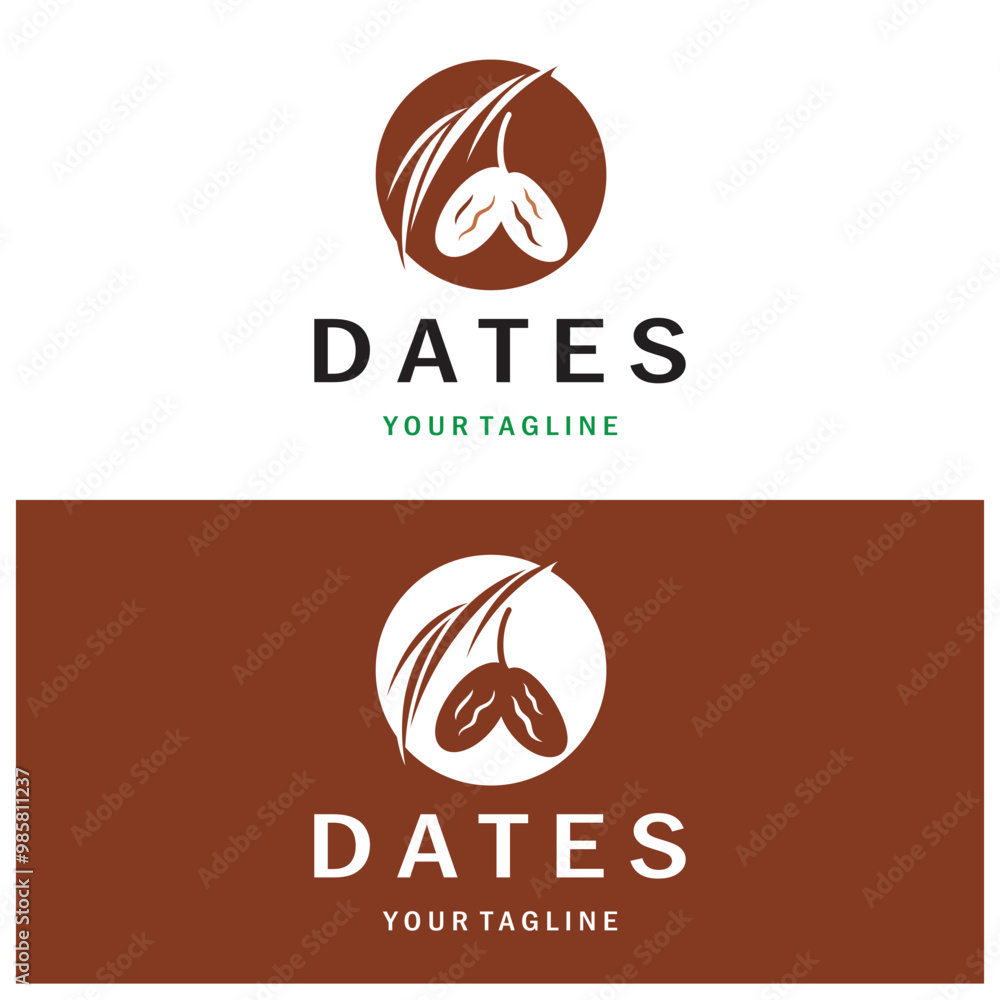 Date palm fruit plant logo design with leavesseeds and date Wallpaper