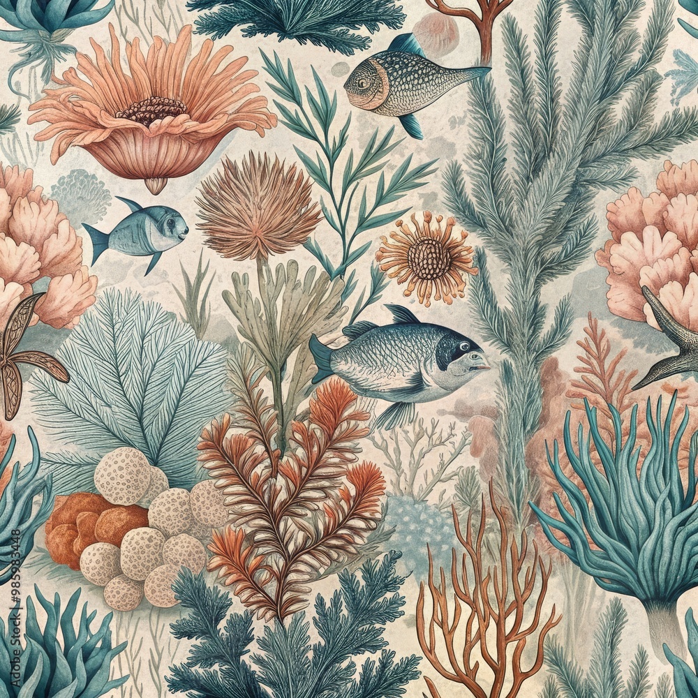 Illustration Of A Vibrant Coral Reef With Diverse Wallpaper Mural - Decorly Solutions | Decorly Solutions