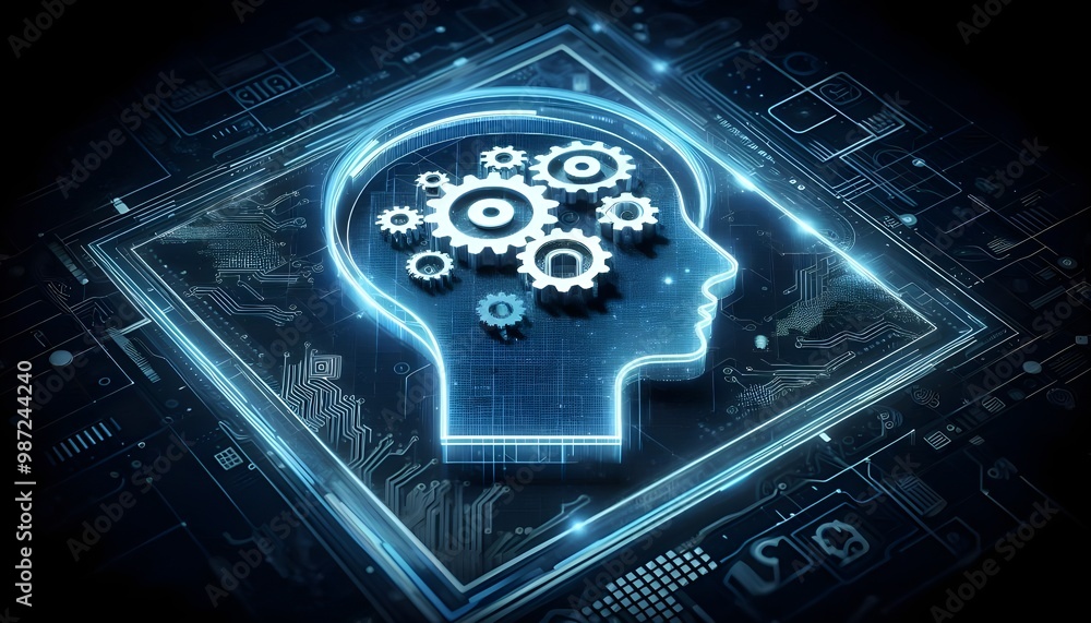 Creative Head Outline And Cogs Ai Hologram On Wallpaper Mural - Decorly Solutions | Decorly Solutions