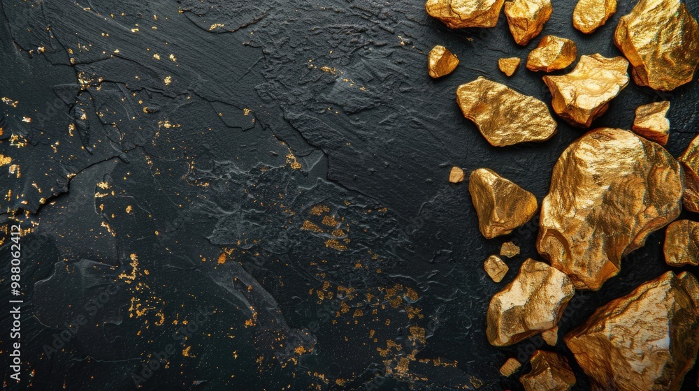Shimmering Gold Nuggets On Black Background Symbolizing Wealth Wallpaper Mural - Decorly Solutions | Decorly Solutions