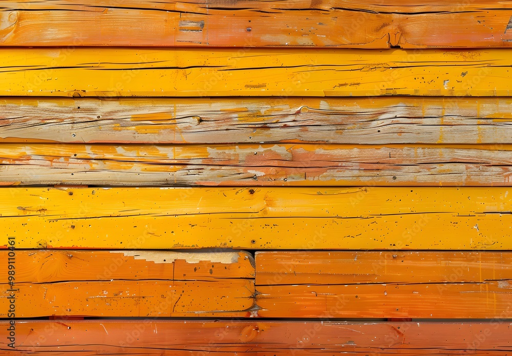 Close up of yellow painted wooden Planks. Wooden Background Texture