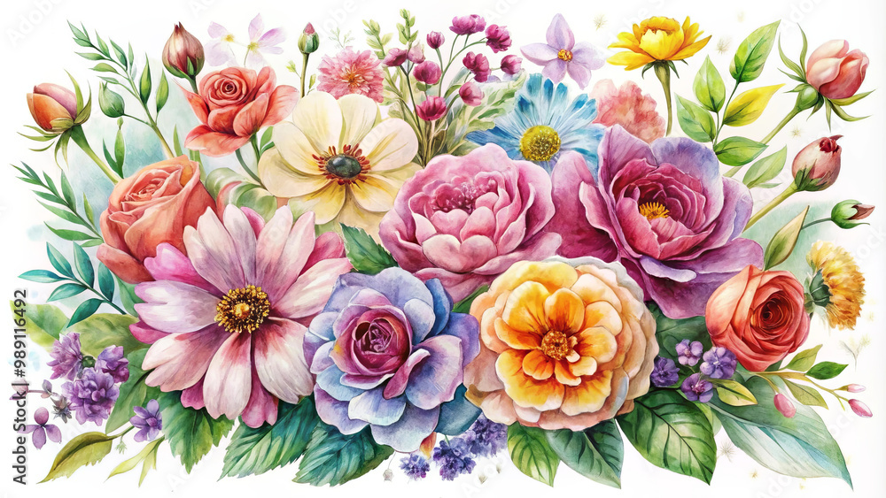 A Vibrant Watercolor Illustration Featuring Beautiful Arrangement Of Wallpaper Mural - Decorly Solutions | Decorly Solutions