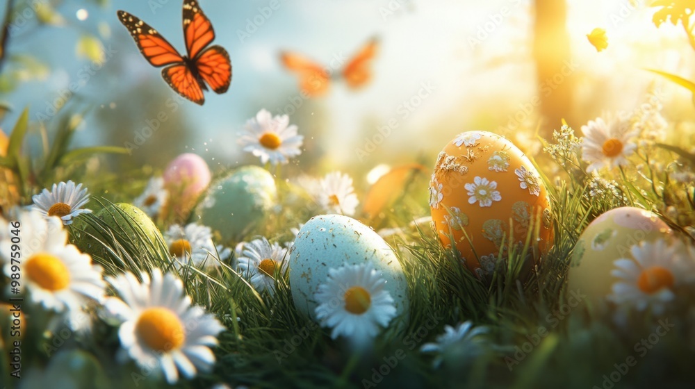 Bright Easter Eggs Nestled In Grass With Daisies Wallpaper Mural - Decorly Solutions | Decorly Solutions