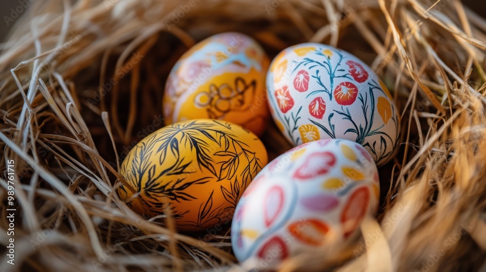 Close-up Of Painted Easter Eggs With Detailed Designs Wallpaper Mural - Decorly Solutions | Decorly Solutions