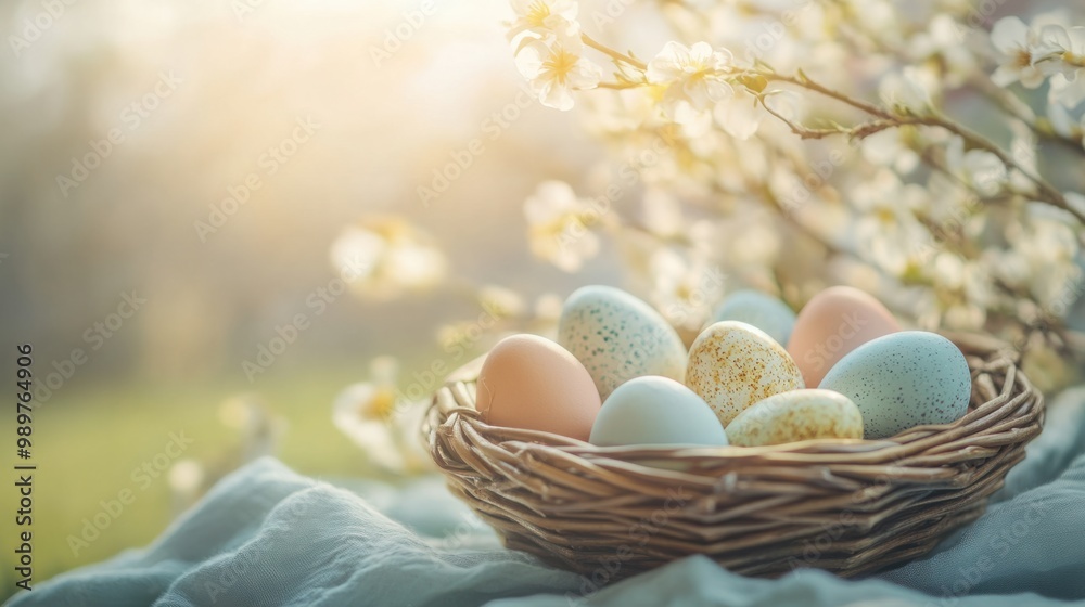 Decorative Easter Eggs Arranged In A Woven Basket Wallpaper Mural - Decorly Solutions | Decorly Solutions
