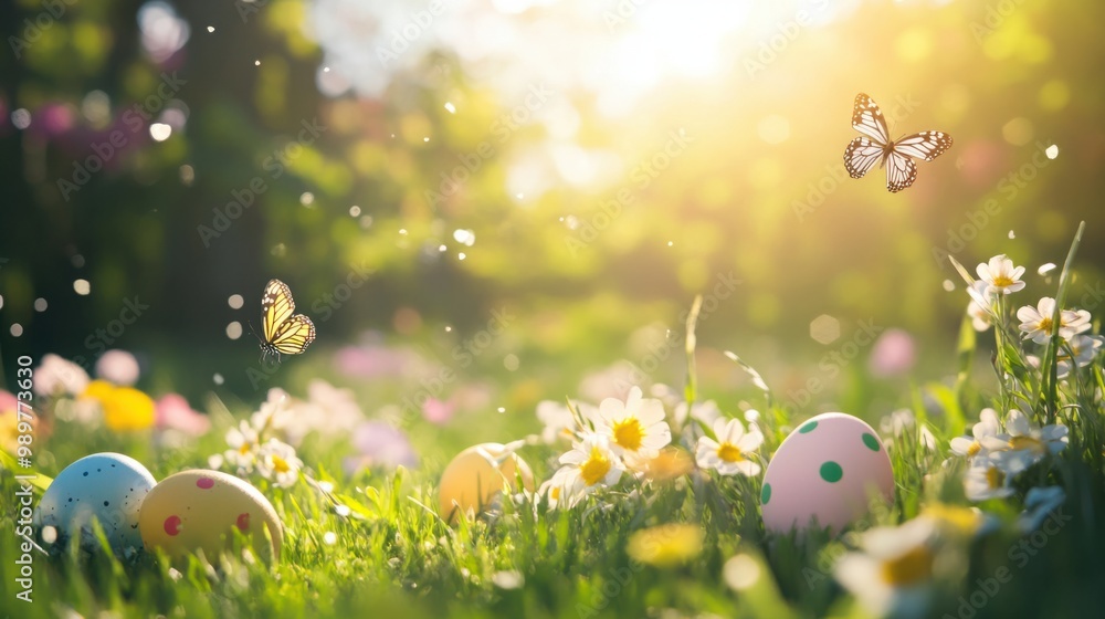 Sunny Spring Field With Easter Eggs Hidden In Wallpaper Mural - Decorly Solutions | Decorly Solutions