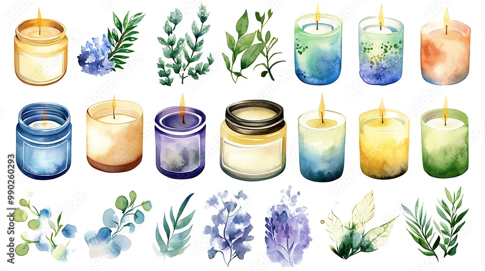 Watercolor Candles And Greenery Clipart Set Wallpaper Mural - Decorly Solutions | Decorly Solutions