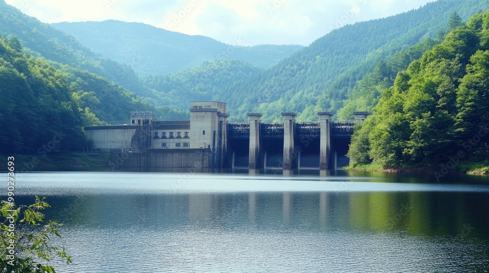 Dam Construction In Mountainous Landscape With Lush Greenery Wallpaper Mural - Decorly Solutions | Decorly Solutions