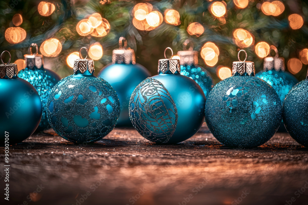 A Festive Arrangement Of Blue Christmas Ornaments On Wallpaper Mural - Decorly Solutions | Decorly Solutions