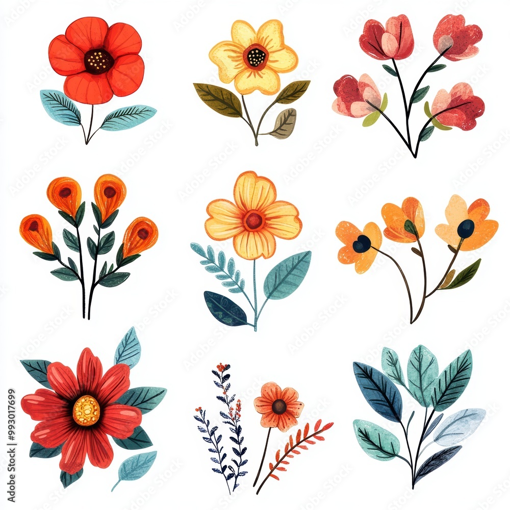 Watercolor Floral Set Wallpaper Mural - Decorly Solutions | Decorly Solutions
