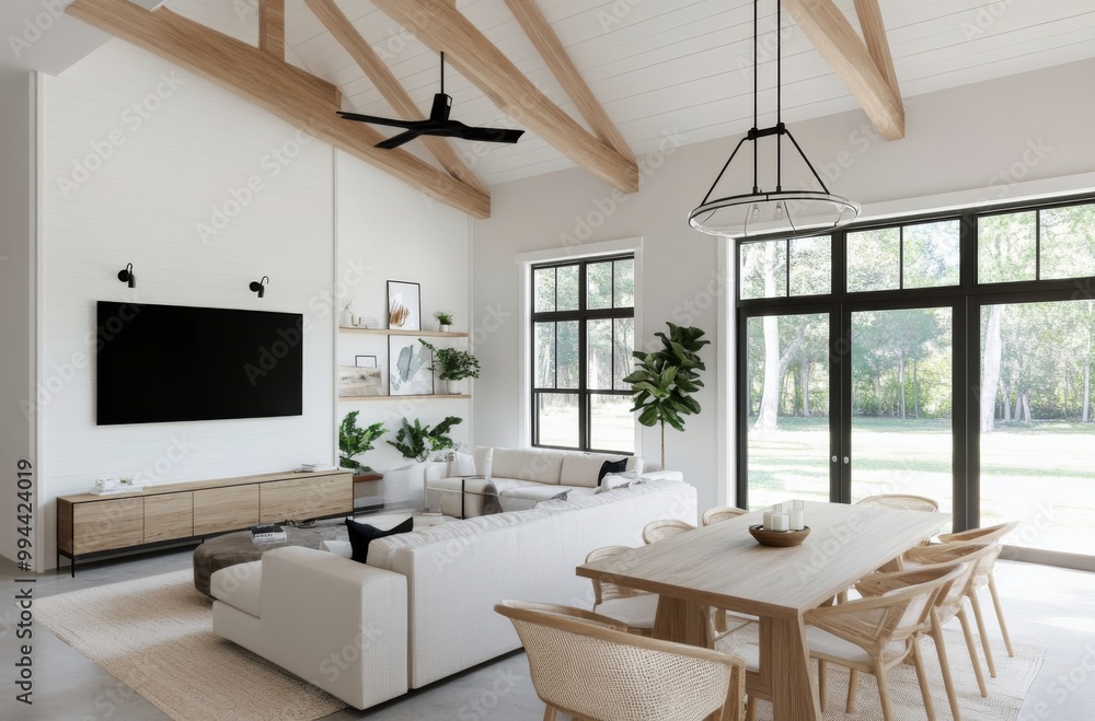 Modern Living Room And Kitchen Design Featuring Open Wallpaper Mural - Decorly Solutions | Decorly Solutions