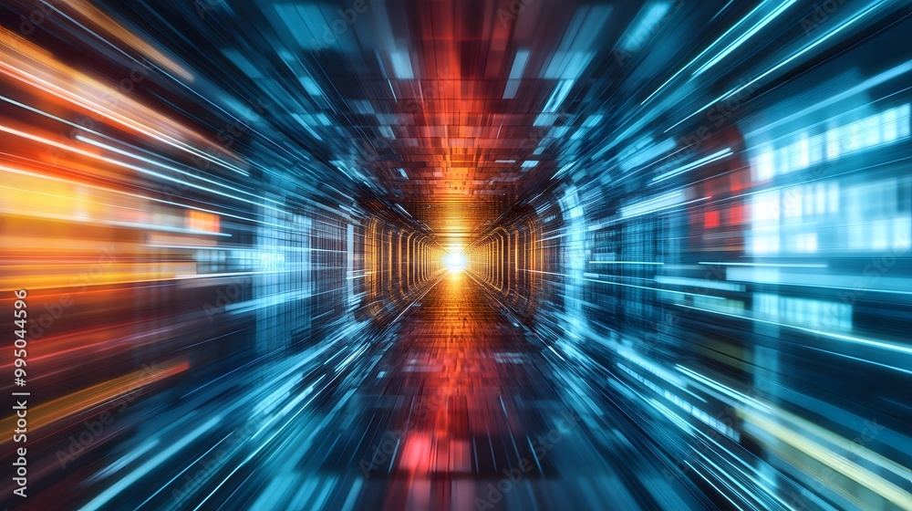 High speed transmission in a abstract style, AI concept with technology, motion blur Cyber binary. Data stream