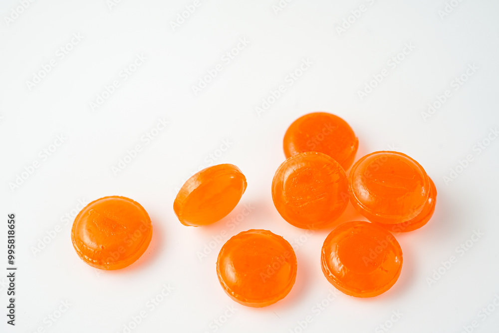 Medical Lozenges Tablets Orange Flavor On A White Background
