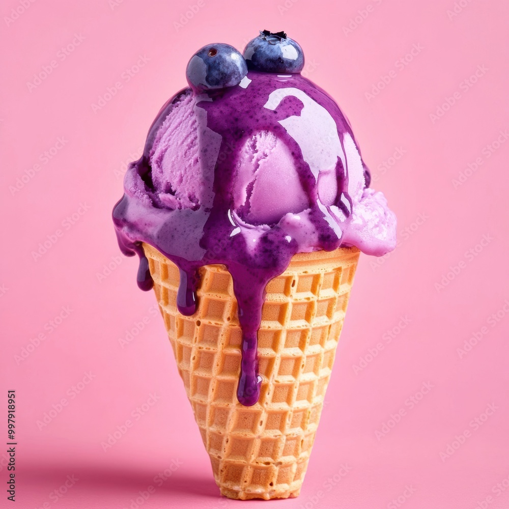 A Vibrant Ice Cream Cone With Blueberry Topping Wallpaper Mural - Decorly Solutions | Decorly Solutions