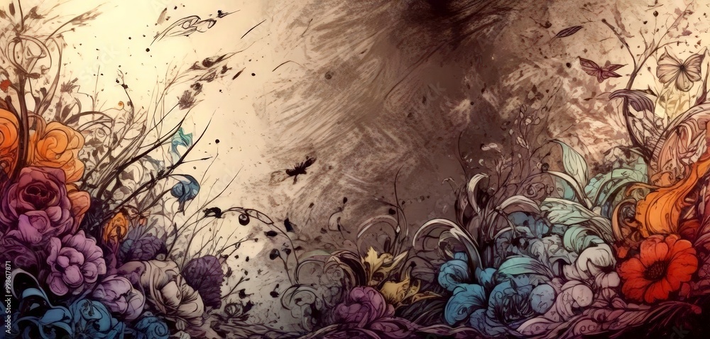 A digital illustration featuring a vibrant abstract floral s Wallpaper