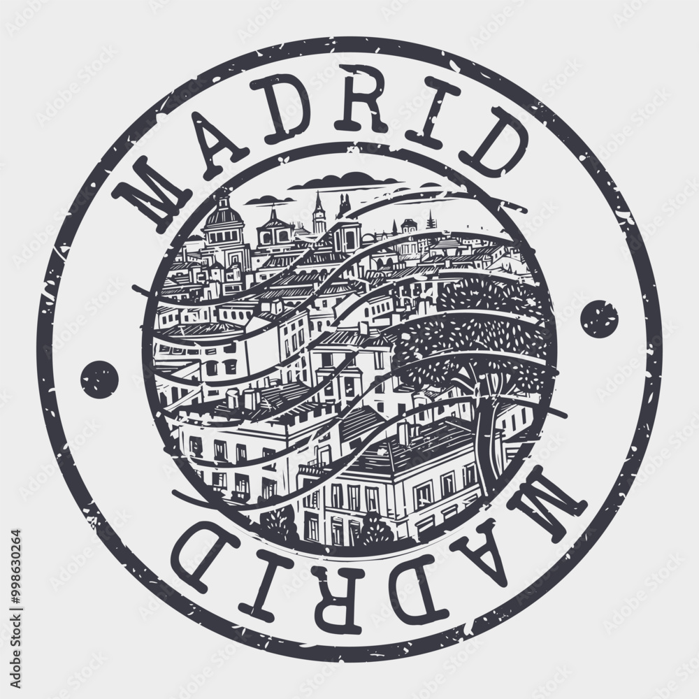 Madrid Stamp Postal Silhouette Seal Passport Round Design Ve Wallpaper