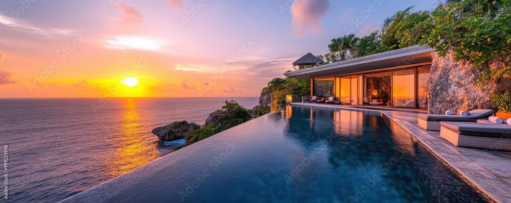 Luxurious Cliffside Infinity Pool Overlooking The Ocean Tropical Wallpaper Mural - Decorly Solutions | Decorly Solutions
